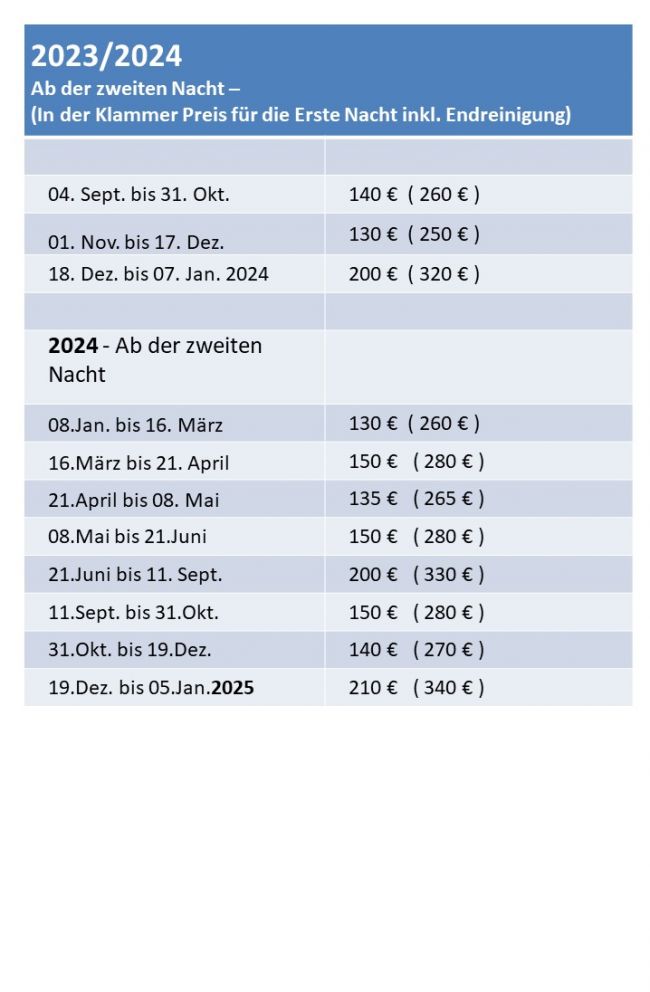 Die Preise gelten für bis zu 4 Personen / Übernachtung.